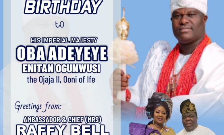 “Myself and my amiable wife, Ambassador and Chief (Mrs) Raffy Bell, the Otun Asiwaju Onigbagbo and Yeye Otun Asiwaju Onigbagbo of Ijebuland wholeheartedly extend our birthday greetings to felicitate Ooni of Ife, His Imperial Majesty Oba Adeyeye Enitan Ogunwusi on his 51st birthday celebration holding today Friday 17th October, 2025”.