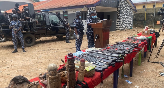 He said nine kidnapped victims and seven stolen children were rescued, most of whom have already been reunited with their families. Recovered items included 17 firearms such as AK-47s and pump-action rifles, 72 rounds of 7.62mm ammunition, 673 live cartridges, nine stolen motorcycles, explosives, charms, laptops, mobile phones, and what police described as “Biafra currencies.”