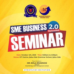 According to a statement by the leadership of the age-group headed by Giwa Oluseye Yusuf, the SME Business Seminar will hold on Saturday, October 4, 2025 at the ICT Centre, Ijebu Ode Grammar School, starting from 9am.